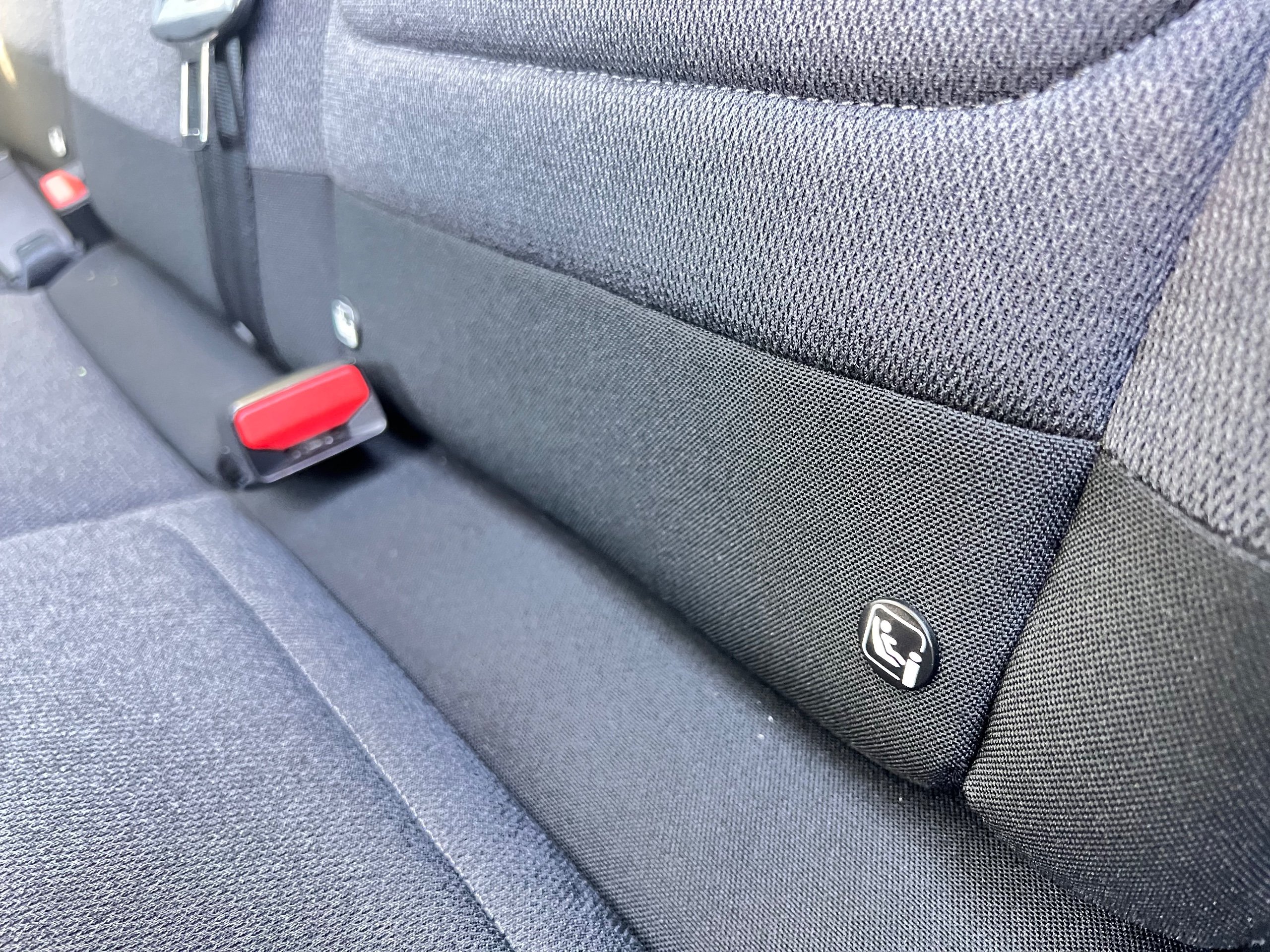 ISOFIX Mountings on Outer Rear Seats with Top Tether and Labels Indicating Fixing Points